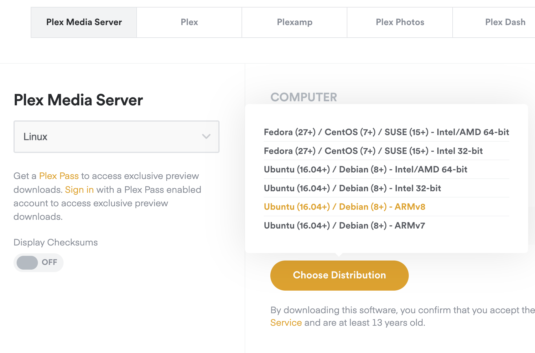 因為Plex Media Server 官方支持的ARM 版本只可以在Ubuntu 和Debian 上運行。