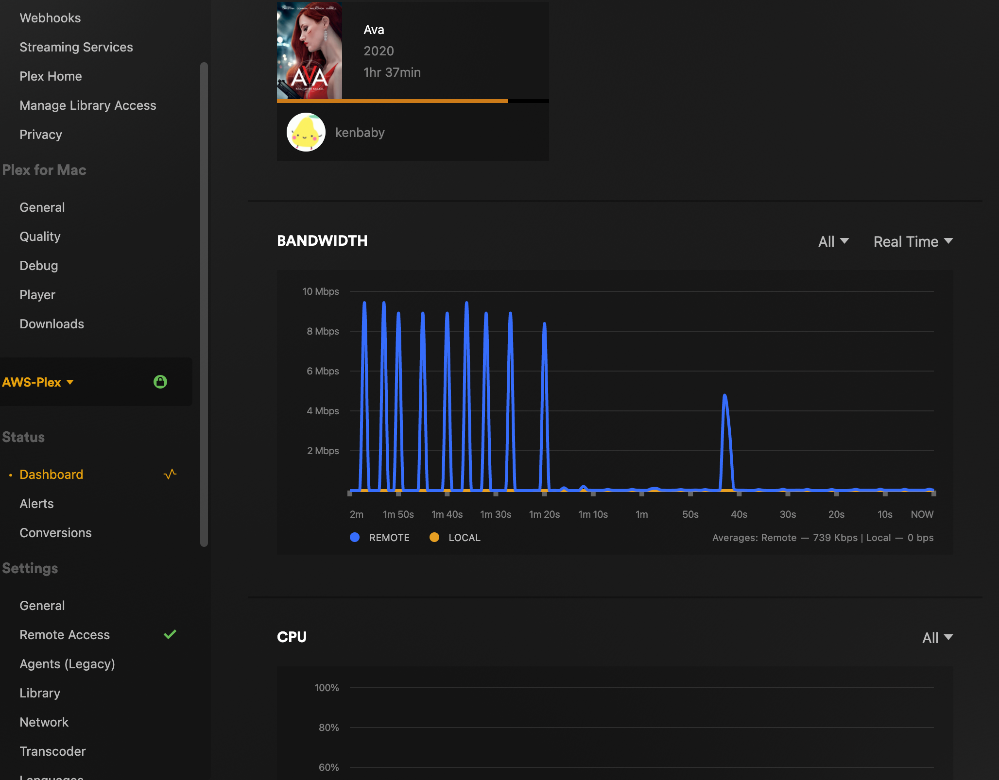 重啟試試,沒問題。對於plex direct play 來說,t4g.micro 就足夠使用了,以1080p 的電影來看,CPU利用率甚至都沒到6%,完全在t4g.micro 的正常可用範圍內。