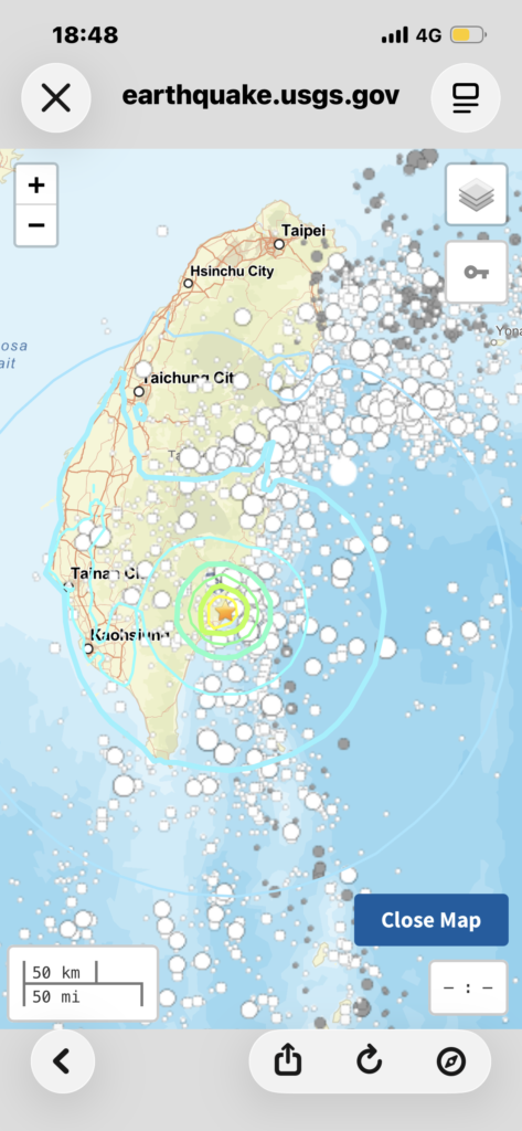 從分布圖上看起來,沒有特別大的圈圈,雖然圈圈很多,但烈度沒有特別高的,台東外海還很深,感覺也掀不起什麼tsunami。
